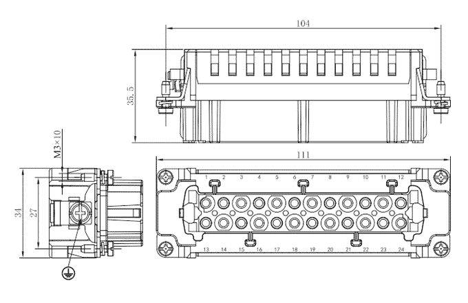 SE Series,24-pole,Ground,Female,Crimp connection