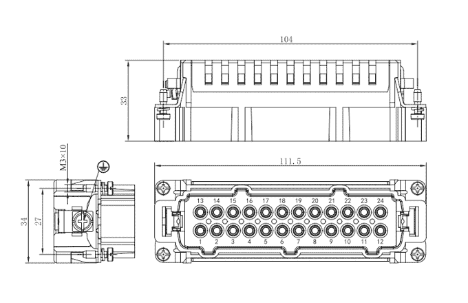 SE Series,24-pole,Ground,Male,Crimp connection